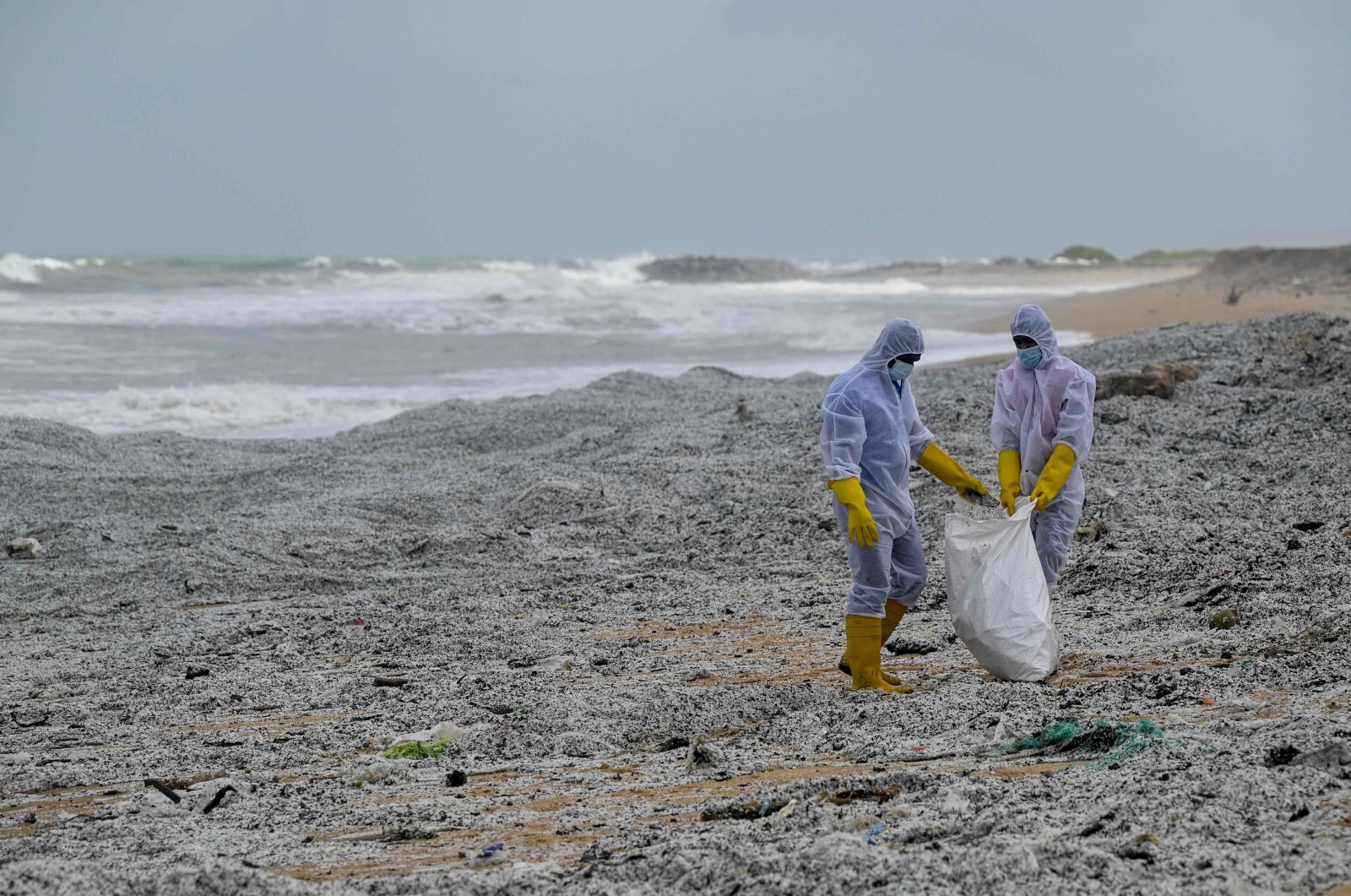 Plastic resin pellet pollution from spilled cargo was washing up on Sri Lanka’s beaches from 27 May. Debris including tonnes of plastic pellets and burned fiberglass have already polluted nearby beaches. Tonnes of microplastic granules polluted beaches as well.