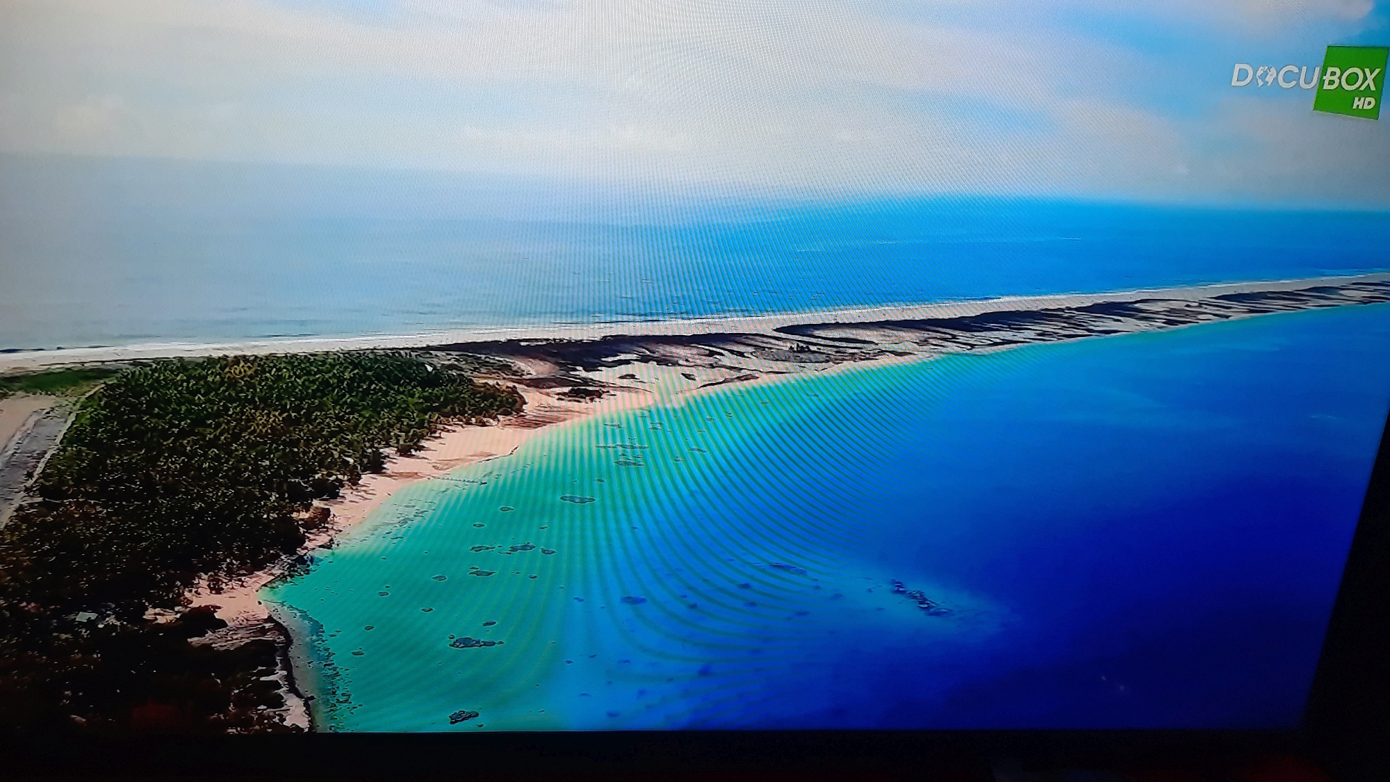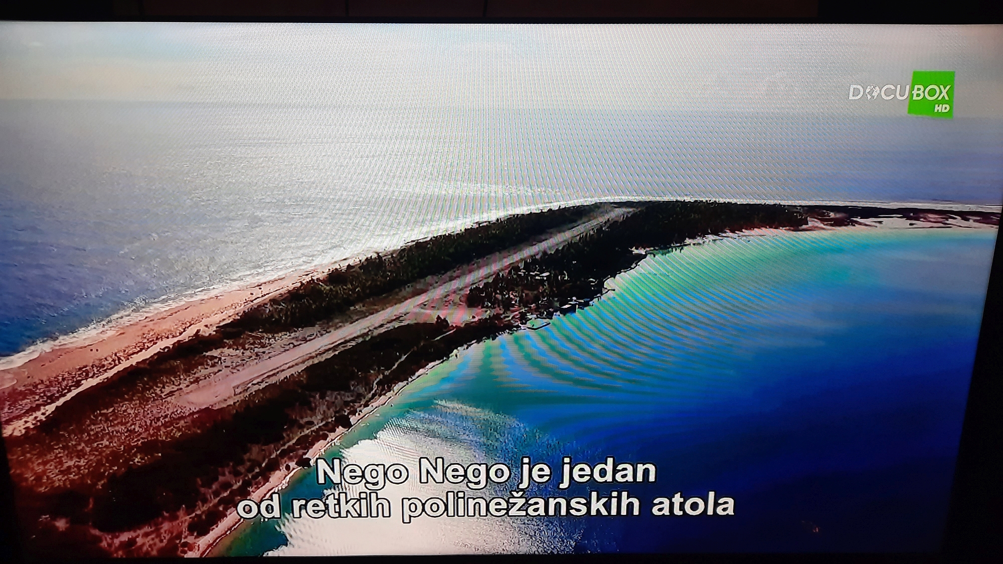 Today I accidentally saw on DocuBox TV some program about French Polynesia, then I saw Nengo Nengo atoll. I took pictures with phone directly from TV to further update with exclusive pictures as an update for this atoll. Anyway, they were talking about how Nengo Nengo is privately owned and there is a young couple living there as caretakers and with additional staff there are around 6 people on the atoll, and they receive food and supplies once in a few months. They also happen to get stuck shortly or hit with smaller boats in coral heads due to shallow water and that is common in that atoll’s lagoon. They said that its calmed and peaceful there. That was very surprise to accidentally notice as its extremely rare and hard to find any information about that atoll. Here are few pictures I took directly from TV