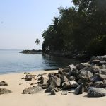 The interesting thing is that Isla Quiros features one long beach on low tide. On northeastern part, there is a small beach combined with rocks, but on low tide the beach is about 50m wide, and can be long up to 120m as that is technically a sandbar connected to the island. Perhaps filling that part with sand will solve the issue of disappearing beach. The famous beauty of Pearl Islands with flora and fauna directly reflects to Quiros Island as well except it is smaller size.
