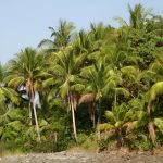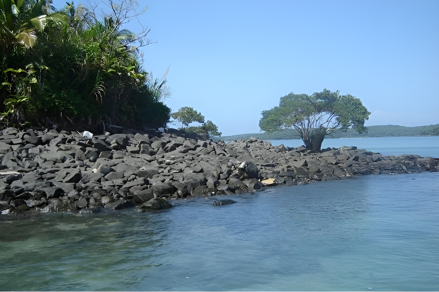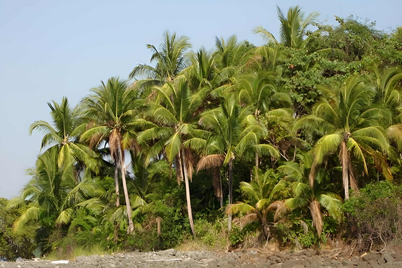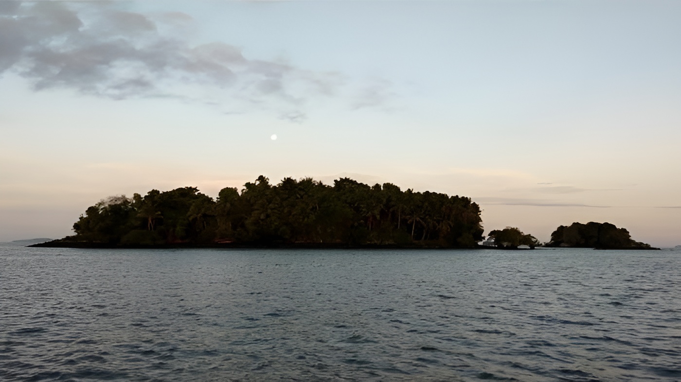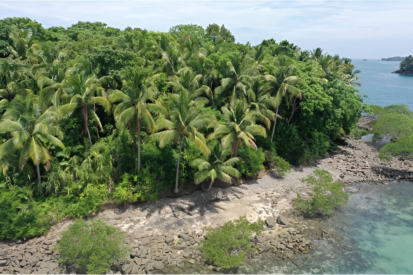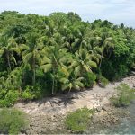 Quiros Island is volcanic island with many rocks around itself and relatively rich volcanic soil that many plants and trees can grow there. There are actually lime, mango, orange, and avocado and native trees on the island, and of course coconut trees for tropical vibe. The whole island is covered in vegetation and is mostly flat with dark volcanic rocks around protecting the island.