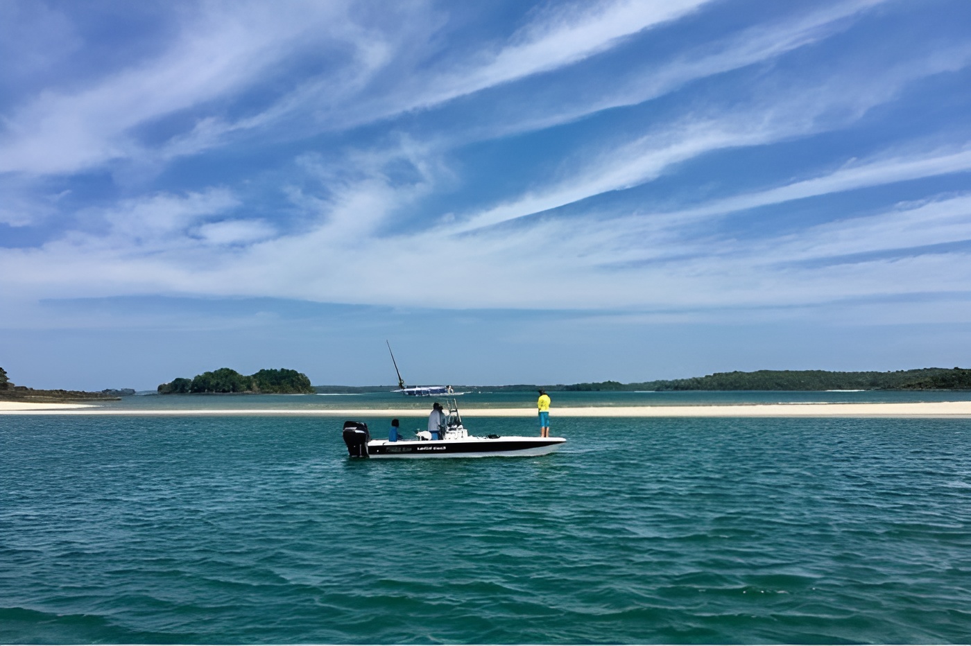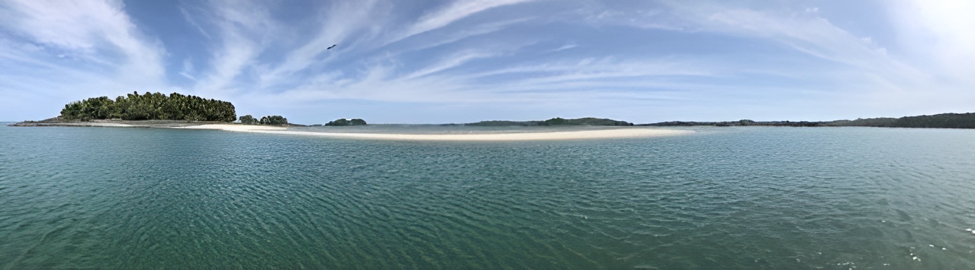 Quiros Island (or isla Quiros) is an island in Pearl Islands, Panama, the Pacific side. Its size is 3,5 acres (1,4 ha) and its maximum width/length are around 240mX155m, and measures are even longer on low tide. The island is nestled almost in the center of famous Pearl Islands archipelago, being surrounded by small and largers islands directly. Isla Quiros is just 1,1,km away from large Isla del Rey, and is less than 83kms southeast of Panama City’s shores.